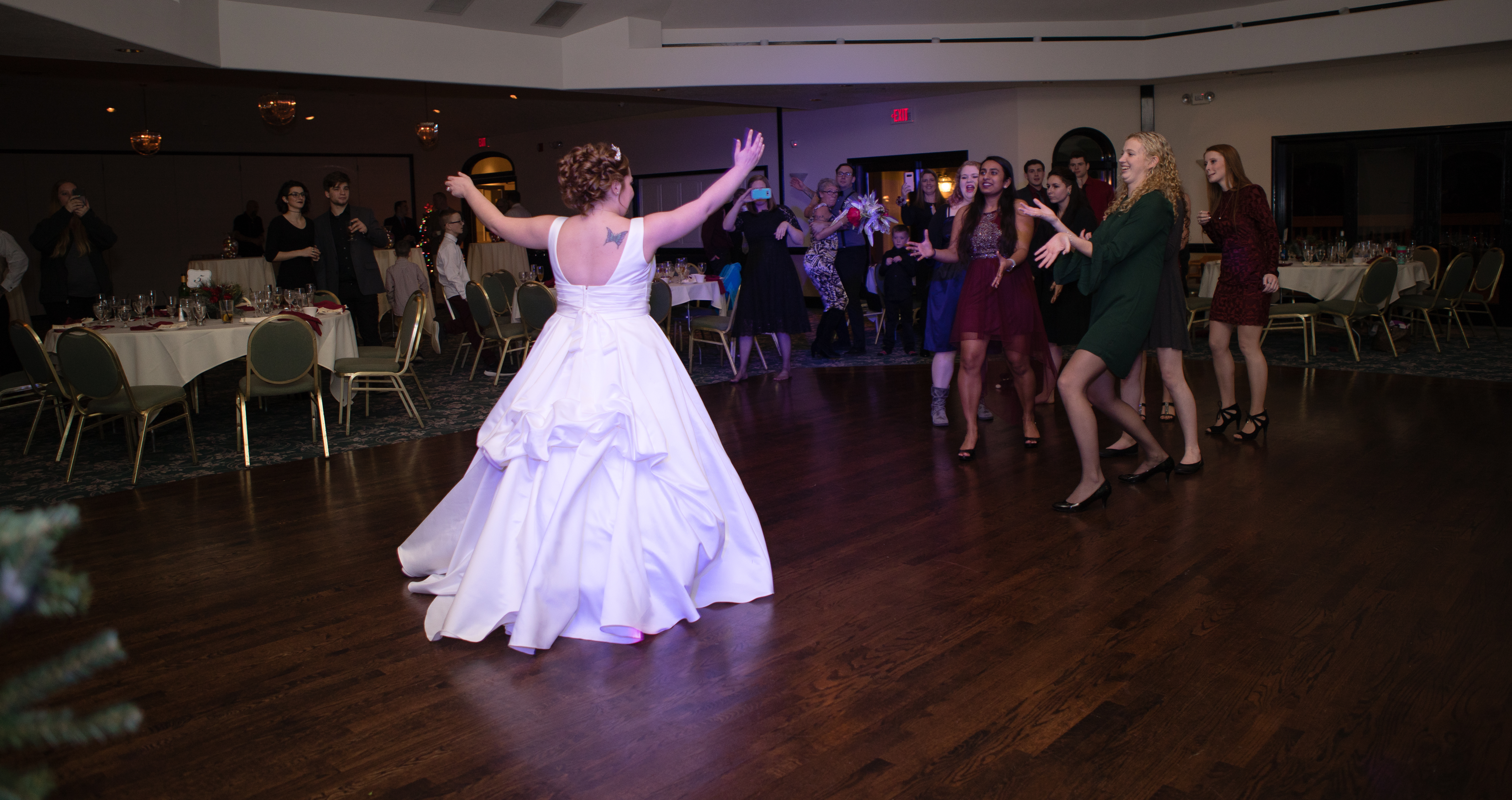 There were so many unique touches from a Christmas tree with ornaments for guests to sign, personalized ornaments as favors, and beautiful decor. The groom even made a brief appearance in a Santa suit jacket and hat which was awesome! My favorite part was the bride’s dress! Tyler had a dress made for a princess. It had stunning bling and sparkle, it twirled to perfection when she danced, and even had pockets!