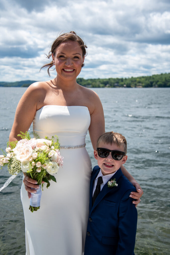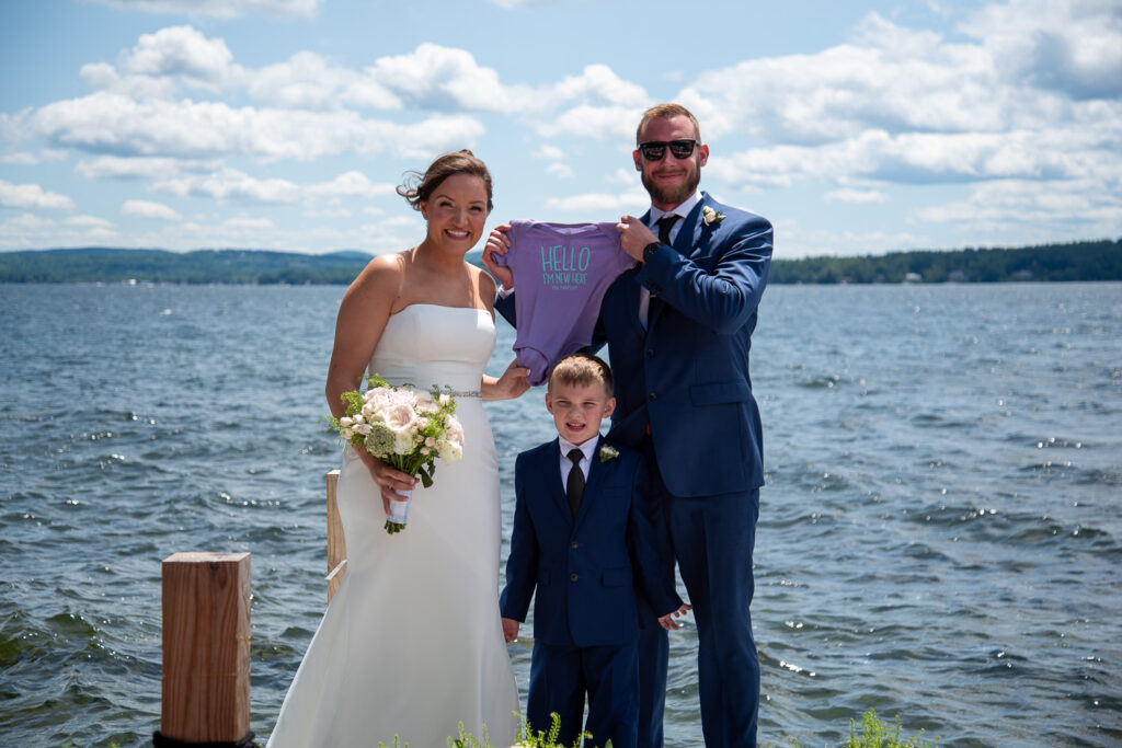 I had the total honor of getting to work with Victoria and Nick for their 4th of July Lake Winni wedding this past summer! What a perfect spot for a couple that loves the water and boating. They got the best weather, beautiful sun, the day was a fairytale. Victoria shared a special first look with Nick and their son before the ceremony with all their family and friends.